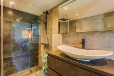 Op de eerste verdieping bevinden zich twee slaapkamers, waarbij de grootste kamer eenvoudig kan worden opgesplitst in twee aparte kamers. Daarnaast is er een moderne badkamer aanwezig met ligbad, stortdouche, toilet en wastafel.