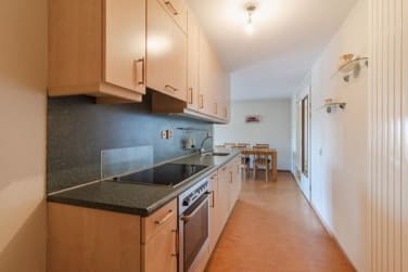 De open keuken is ruim opgezet en voorzien van diverse inbouwapparatuur, met daarnaast een praktische bijkeuken/wasruimte. Het appartement beschikt over twee ruime en lichte slaapkamers, ideaal als hoofdslaapkamer en bijvoorbeeld een werk- of logeerkamer. De nette badkamer is compleet uitgevoerd met een ligbad, douchecabine en badkamermeubel.