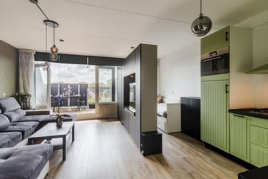 Aan de rechterzijde van de hal bevindt zich het toilet, en loop je door, dan kom je uit in de lichte woonkamer met open keuken. Dankzij de grote raampartijen valt het daglicht royaal naar binnen. De woonkamer voelt ruim aan en biedt de mogelijkheid om een 2e slaapkamer te realiseren. Vanuit de woonkamer heb je toegang tot het ruime balkon op het zuidwesten, waar je tot in de avond kunt genieten van de zon.