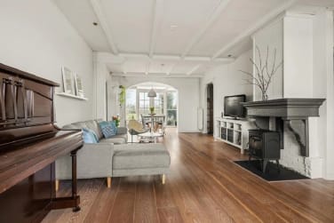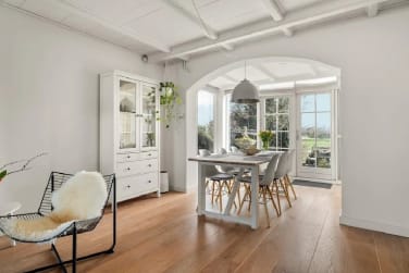 Je komt binnen via de originele voordeur, welke leidt naar een entreehal met glas-in-looddetails, een knipoog naar het verleden. De woonkamer is heerlijk licht door de royale raampartijen en serre, met een houtkachel als sfeervolle blikvanger. Vanuit je favoriete stoel kijk je uit over het uitgestrekte polderlandschap, met de historische molen als dagelijks uitzicht.